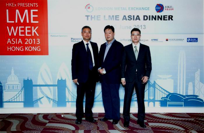 6月26日,受南非標(biāo)準(zhǔn)銀行邀請(qǐng),公司總經(jīng)理駱偉棟先生出席LME亞洲會(huì)議。 香港交易所首次聯(lián)同LME,以「開(kāi)拓新天」為主題的LME 亞洲年會(huì)2013 ,在香港舉辦首屆大型的金屬業(yè)界交流活動(dòng)。來(lái)自全球各地的金屬市場(chǎng)翹楚云集香港,共同探索業(yè)界在亞洲,特別是中國(guó)內(nèi)地市場(chǎng)的最新發(fā)展和經(jīng)濟(jì)前景。會(huì)議期間駱總和必和必拓、日礦、智利國(guó)家銅業(yè)、德銀等國(guó)際一流礦業(yè)公司和商業(yè)銀行就共同關(guān)心的國(guó)內(nèi)外市場(chǎng)、銅消費(fèi)需求、銅產(chǎn)業(yè)未來(lái)發(fā)展趨勢(shì)進(jìn)行了充分的交流。