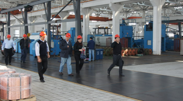 10月22日,上海期貨交易所丁文輝、宜興市人民政府周市長等一行10人訪問江潤銅業(yè),公司總經(jīng)理駱偉棟熱情接待。 駱總對上海期交所、市領(lǐng)導(dǎo)的再次到來表示熱烈歡迎,詳細(xì)介紹了江潤銅業(yè)本年度生產(chǎn)經(jīng)營的基本狀況,對未來發(fā)展的展望。期交所丁總監(jiān)對江潤銅業(yè)在多年合作中提供的優(yōu)質(zhì)服務(wù)表示感謝。 隨后,來訪客人深入生產(chǎn)車間,參觀SCR-7000銅連鑄連軋車間、復(fù)合銅線車間、銅絞線車間。江潤銅業(yè)先進(jìn)的裝備,整潔的車間,優(yōu)美的廠區(qū)環(huán)境給參觀團(tuán)一行留下了深刻印象,一致認(rèn)為符合上海期貨所注冊試驗(yàn)工廠的標(biāo)準(zhǔn)。